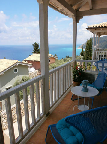 Outside: An asphalt road leads up from the village of Agios Nikitas to the villas Spiaggia Dorata, Isola Bella, Vista Splendida, Mare Magico and Acqua Azzurra. Situated on two different levels, natural stone walls, olive and cypress trees, shrubs, thymes, sages and climbers surround each villa to create privacy.